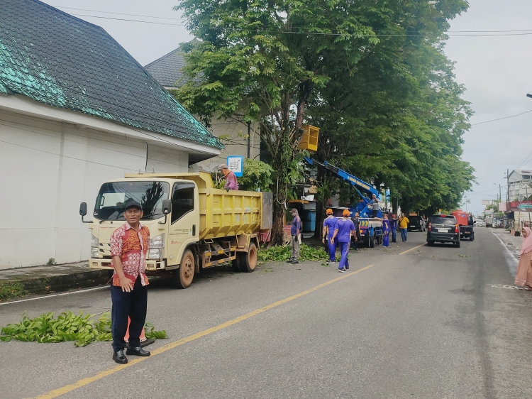 Petugas Dishub turun langsung ke lapangan untuk mengatur jalur kendaraan dan memastikan aktivitas masyarakat tetap berjalan dengan tertib dan aman selama proses penebangan berlangsung. Pengaturan lalu lintas ini juga bertujuan untuk mencegah terjadinya kemacetan serta menjaga keselamatan para pengguna jalan di sekitar area kegiatan.